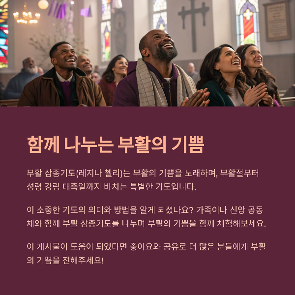 부활 삼종기도는 단순한 반복 기도가 아닌, 신앙인의 삶 속에서 부활 신앙을 새롭게 체험하는 통로입니다.