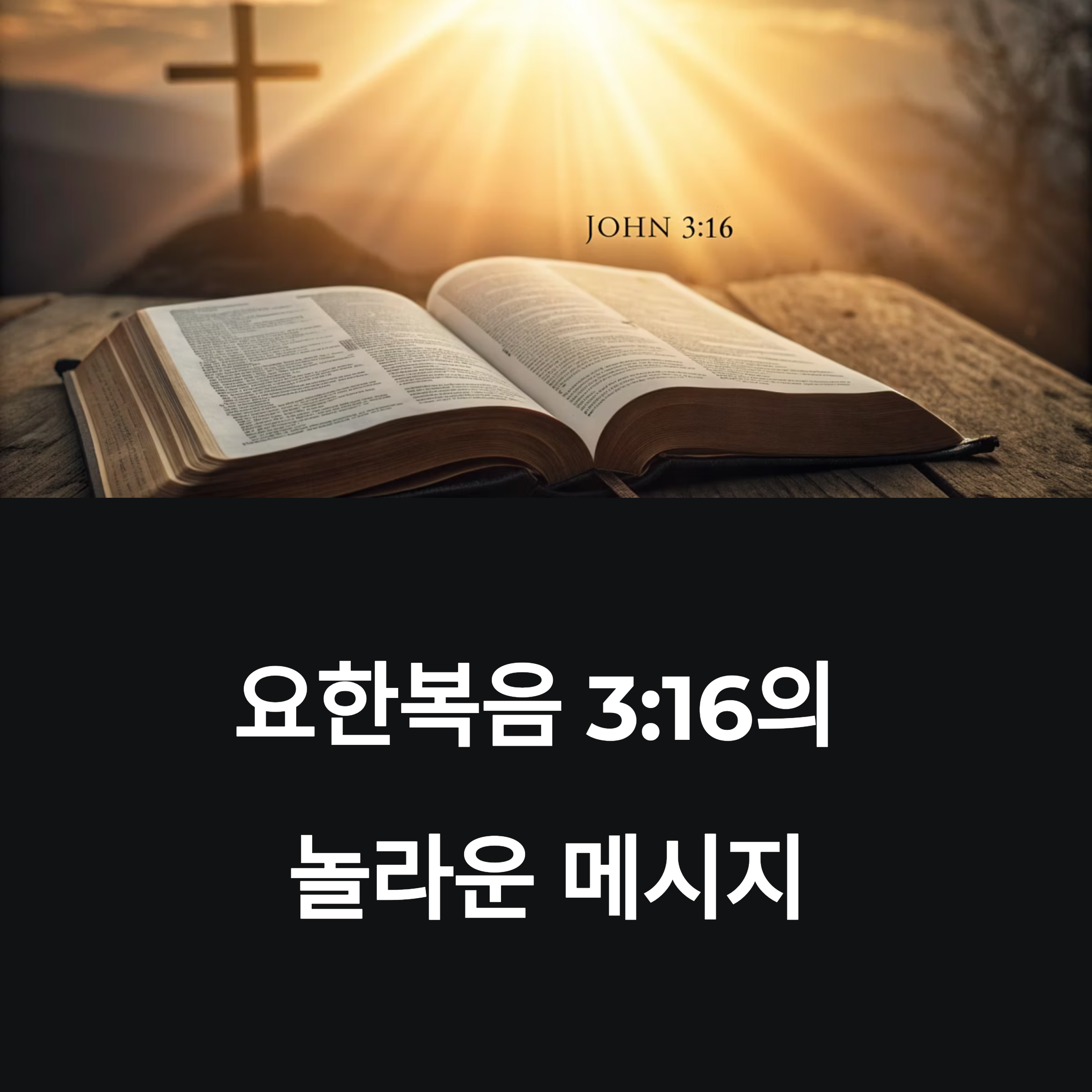 요한복음 3장 16절은 단순한 구절이 아니라, 우리 삶의 방향을 제시하는 나침반입니다. 하나님께서 우리를 얼마나 사랑하시는지를 알 수 있는 이 말씀을 날마다 묵상하고 실천하며 살아가길 바랍니다. 우리가 이 진리를 삶에 적용할 때, 혼란 속에서도 평안을 누리고, 절망 속에서도 희망을 발견할 수 있습니다. 하나님께서 베푸신 구원을 헛되지 않게 하기 위해, 오늘도 주님의 사랑을 실천하며 살아가야 하겠습니다. 이 말씀은 교리적 지식을 넘어, 우리의 영혼을 살리는 생명의 말씀입니다. 믿음 위에 굳건히 서서, 하나님의 은혜 안에 거하며 살아가세요.