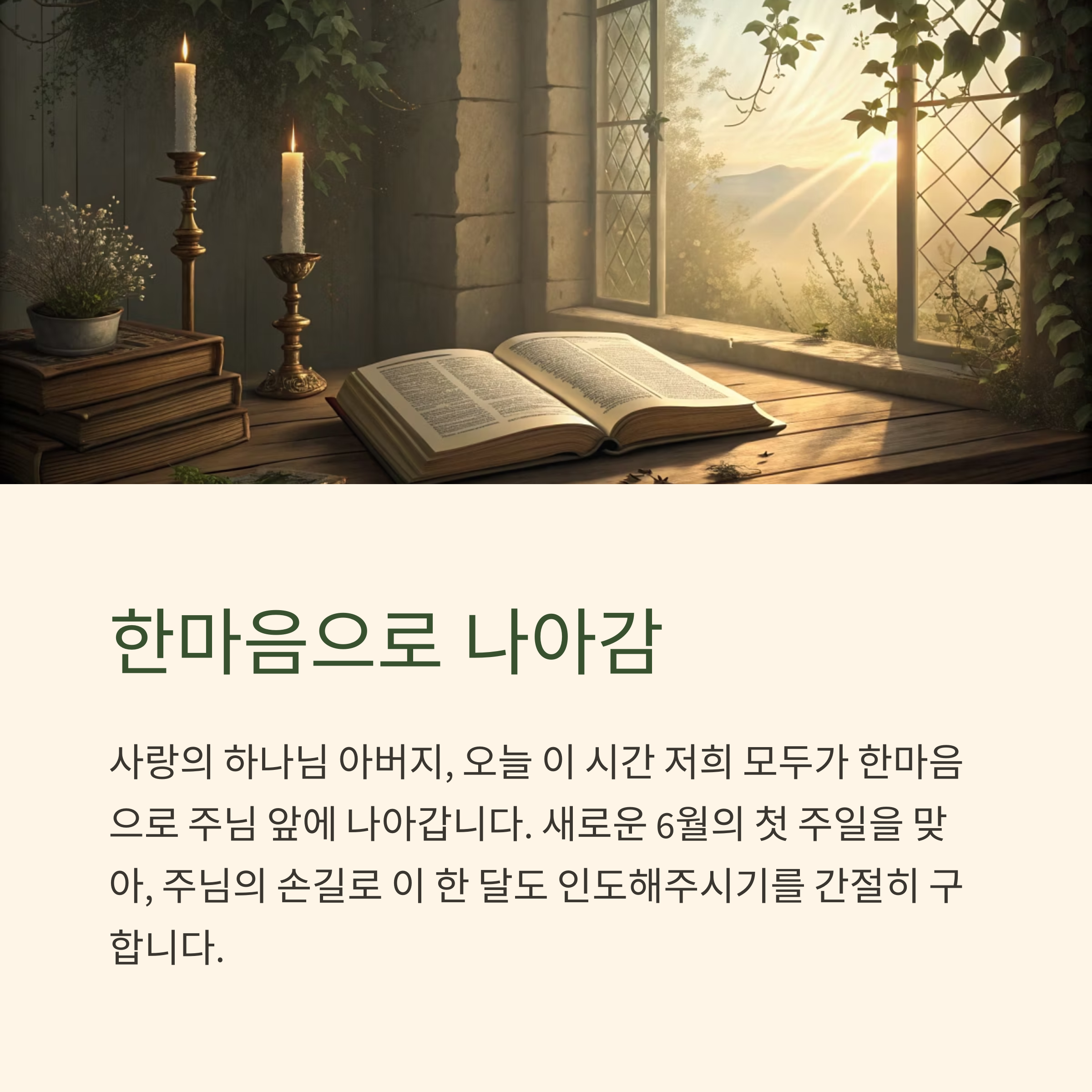 6월첫째주 주일 대표 기도문: 새달의 시작, 믿음으로 여는 기도의 시간