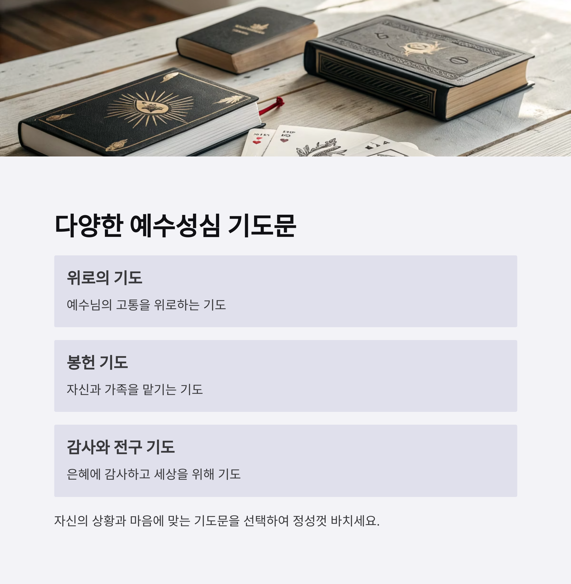 예수성심을 주제로 한 다양한 기도문을 제공합니다.