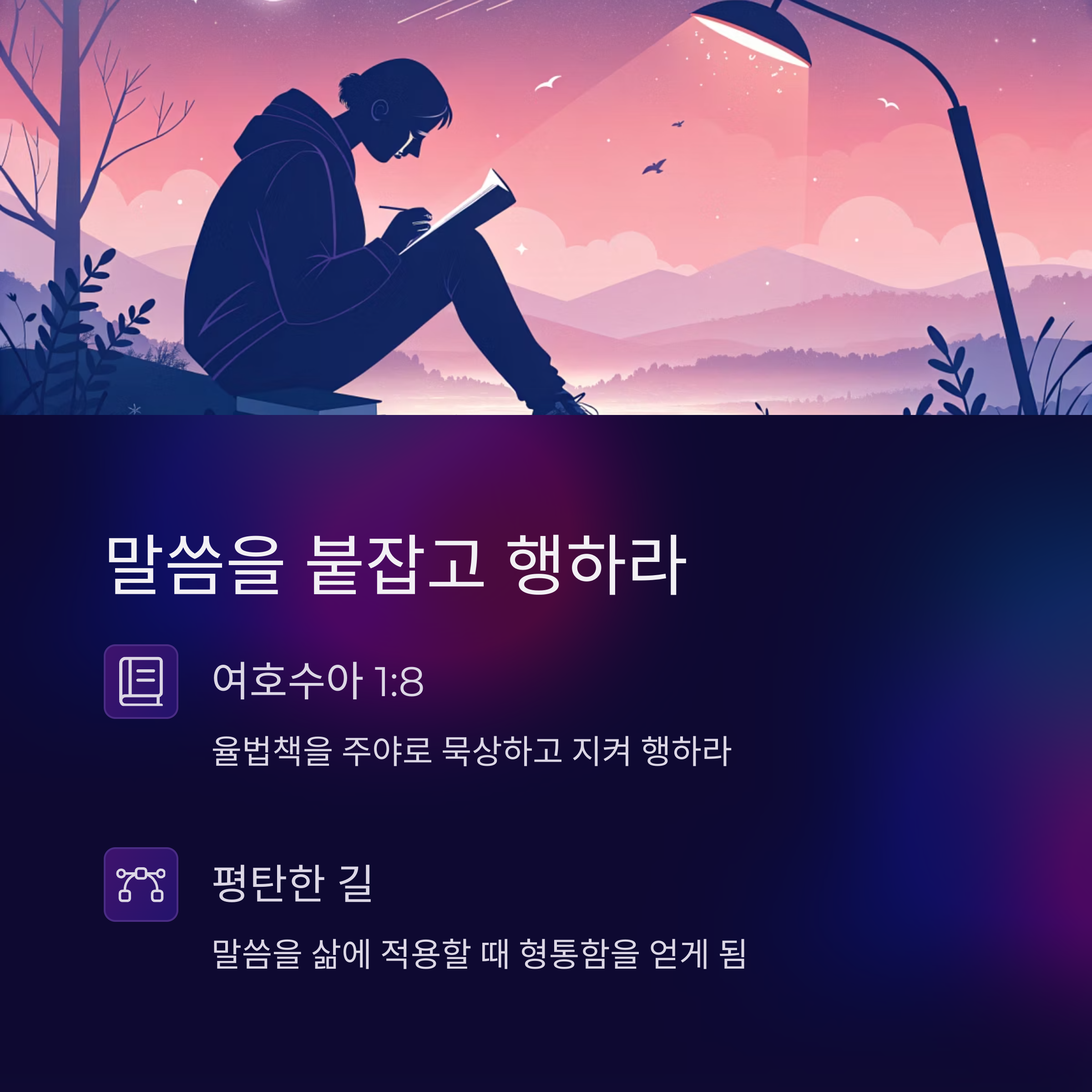 1️⃣ 여호수아 1장 8절 – 하나님의 말씀을 붙잡고 행하라