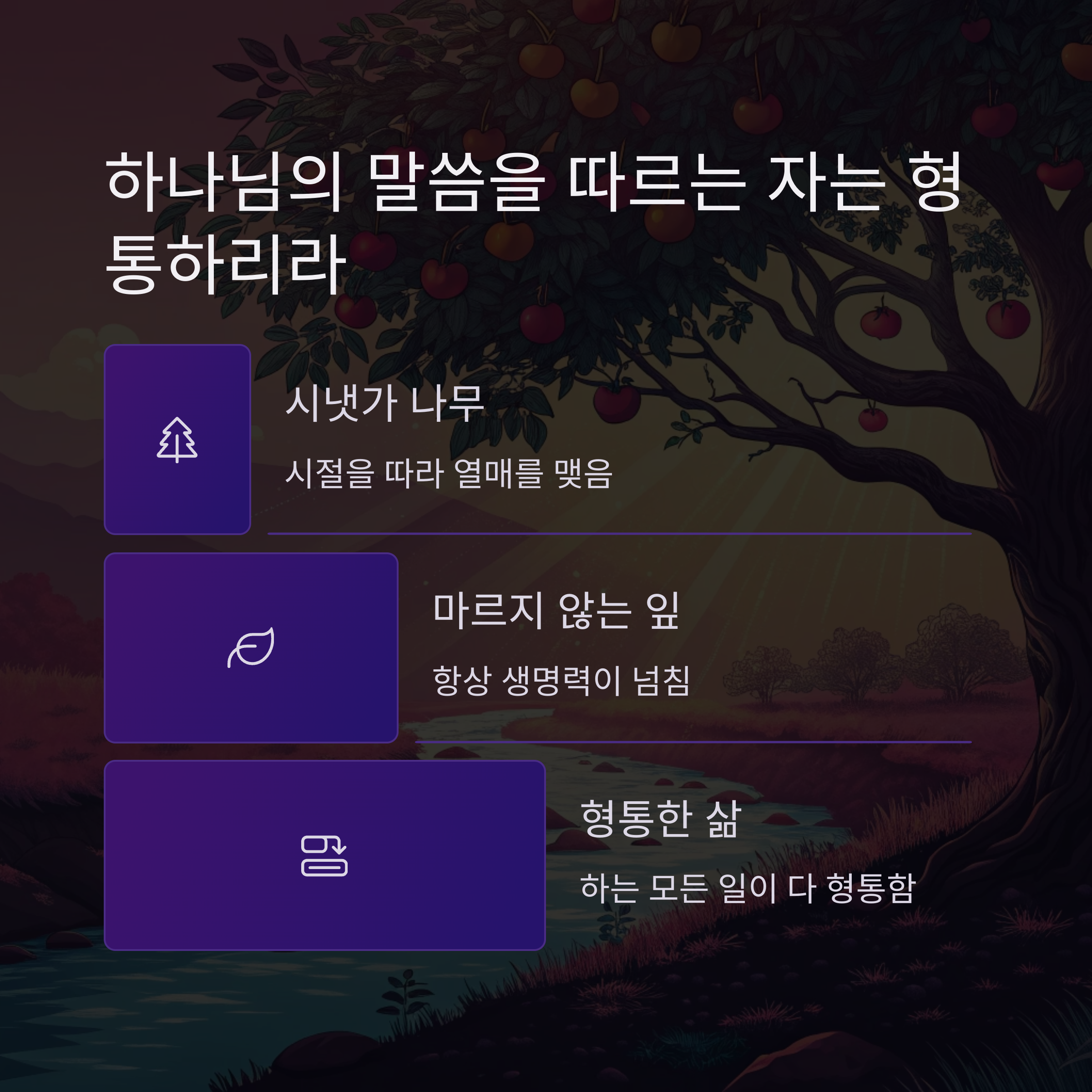 7️⃣ 시편 1편 1-3절 – 하나님의 말씀을 따라가는 자는 형통할 것이다