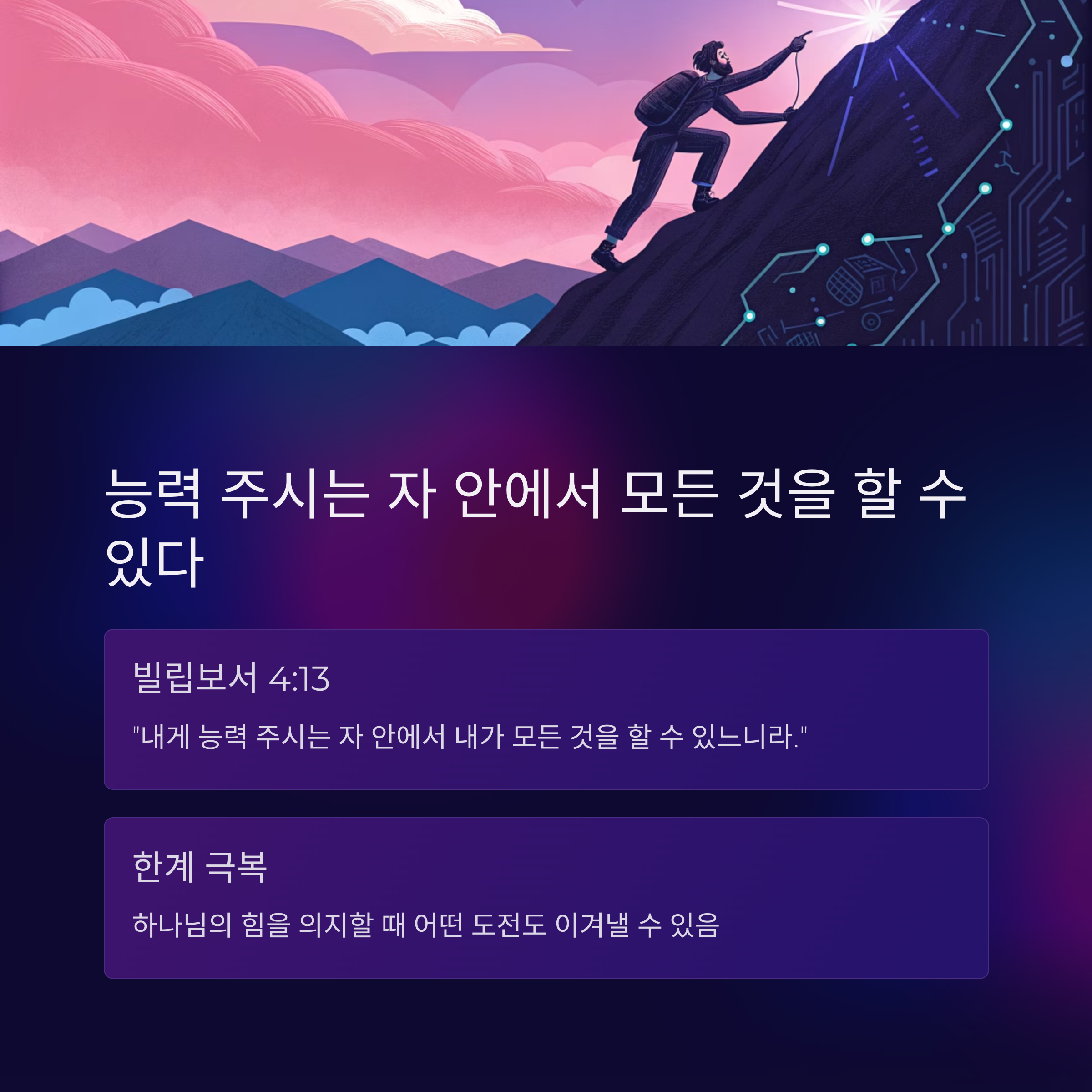 5️⃣ 빌립보서 4장 13절 – 나는 능력 주시는 자 안에서 모든 것을 할 수 있다