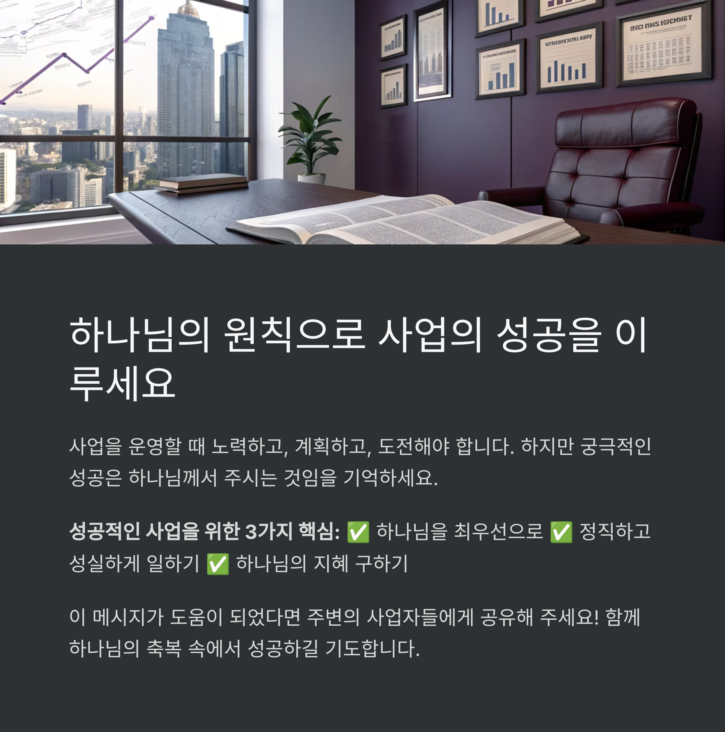 🔹 결론 – 하나님의 원칙대로 사업을 하면 성공할 수 있습니다!