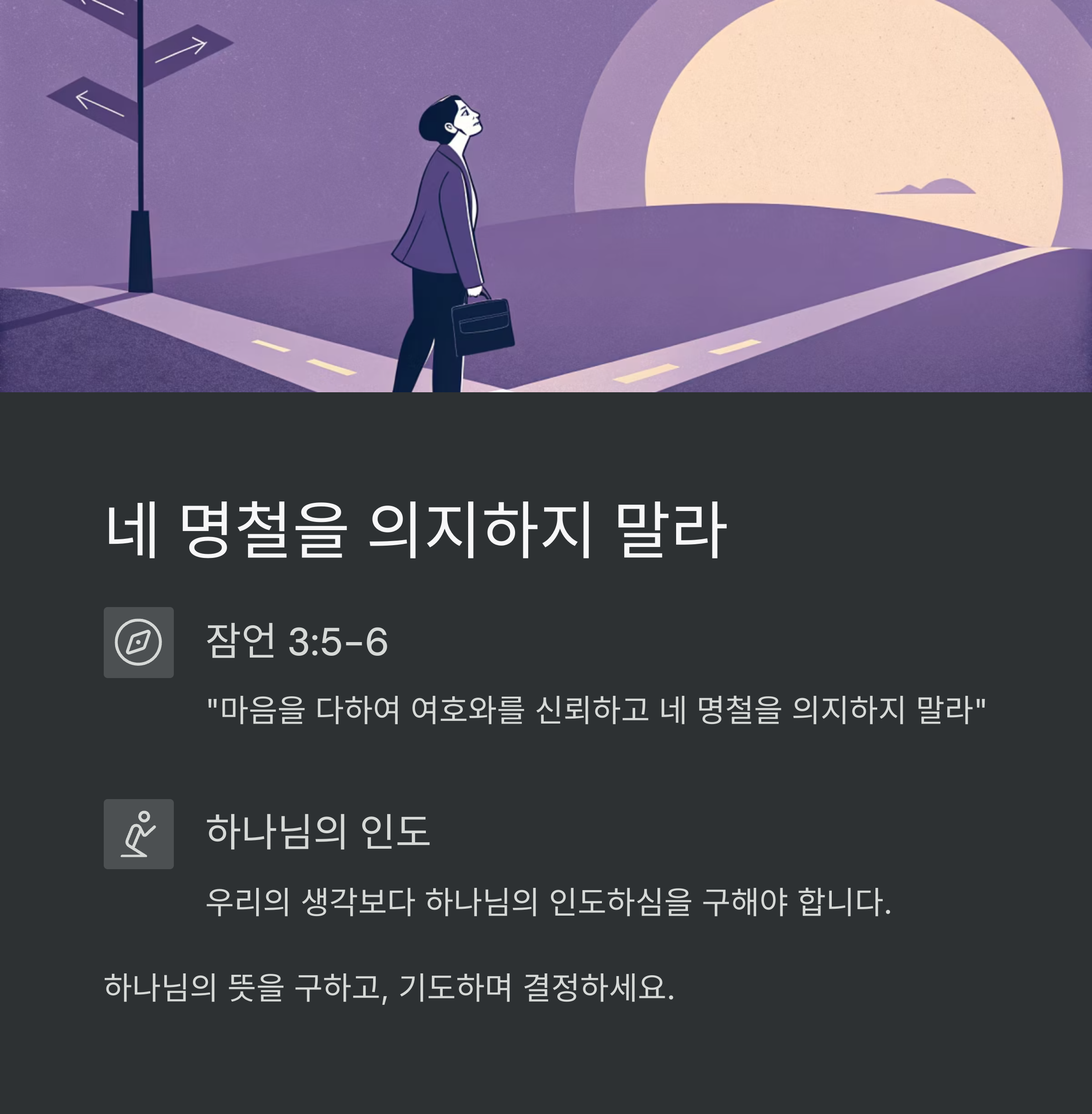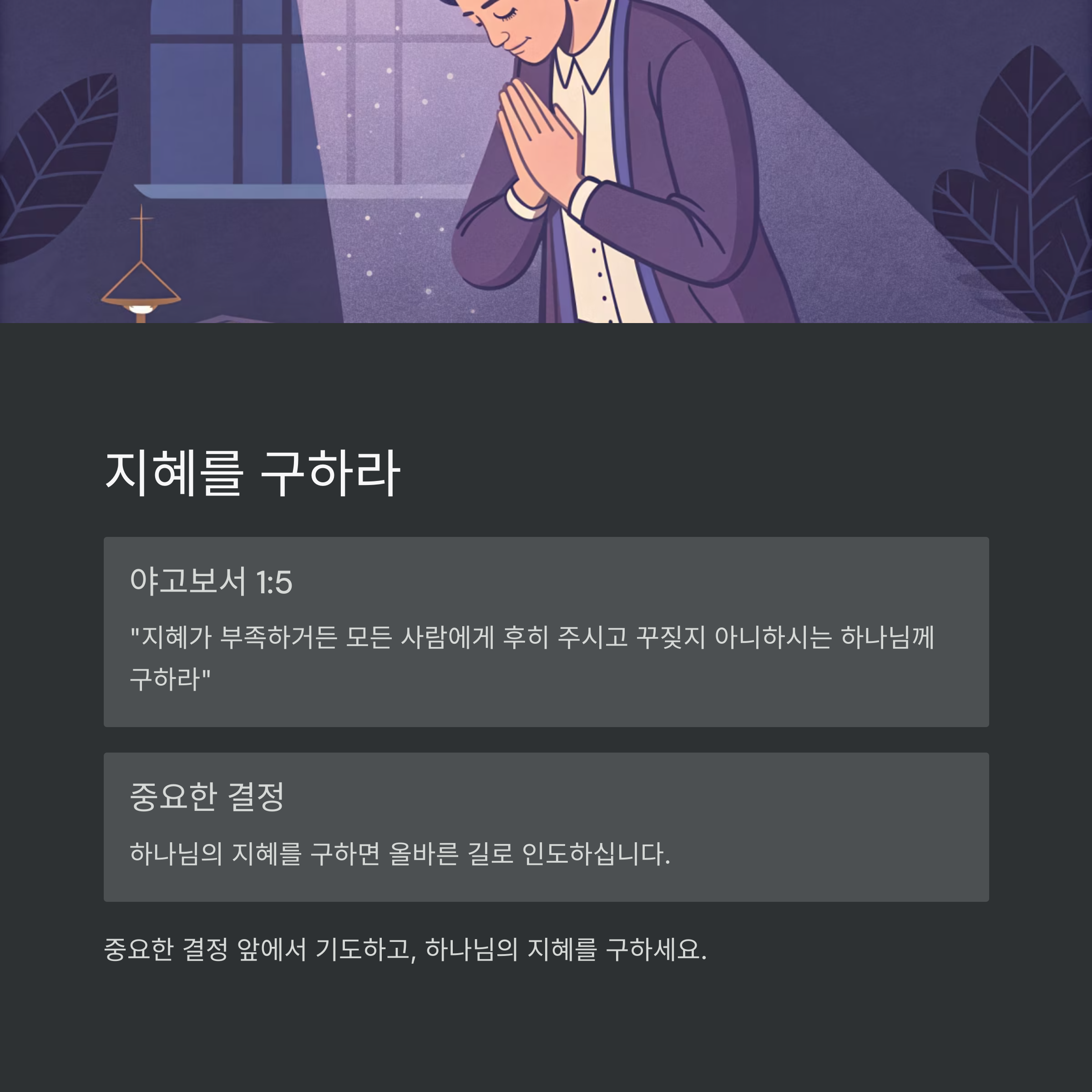 👉 중요한 결정 앞에서 기도하고, 하나님의 지혜를 구하세요.