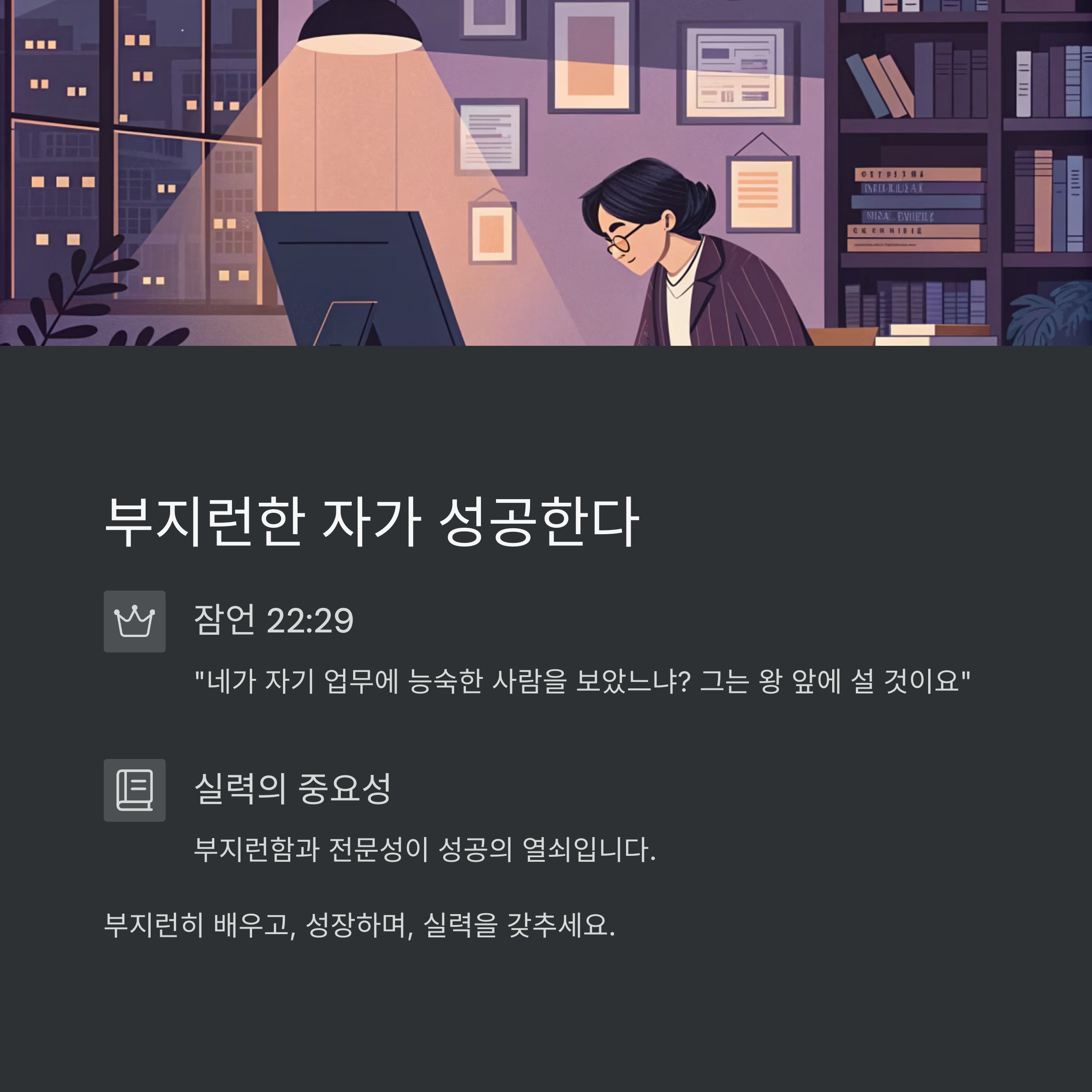 3️⃣ 잠언 22장 29절 – 부지런한 자가 성공한다