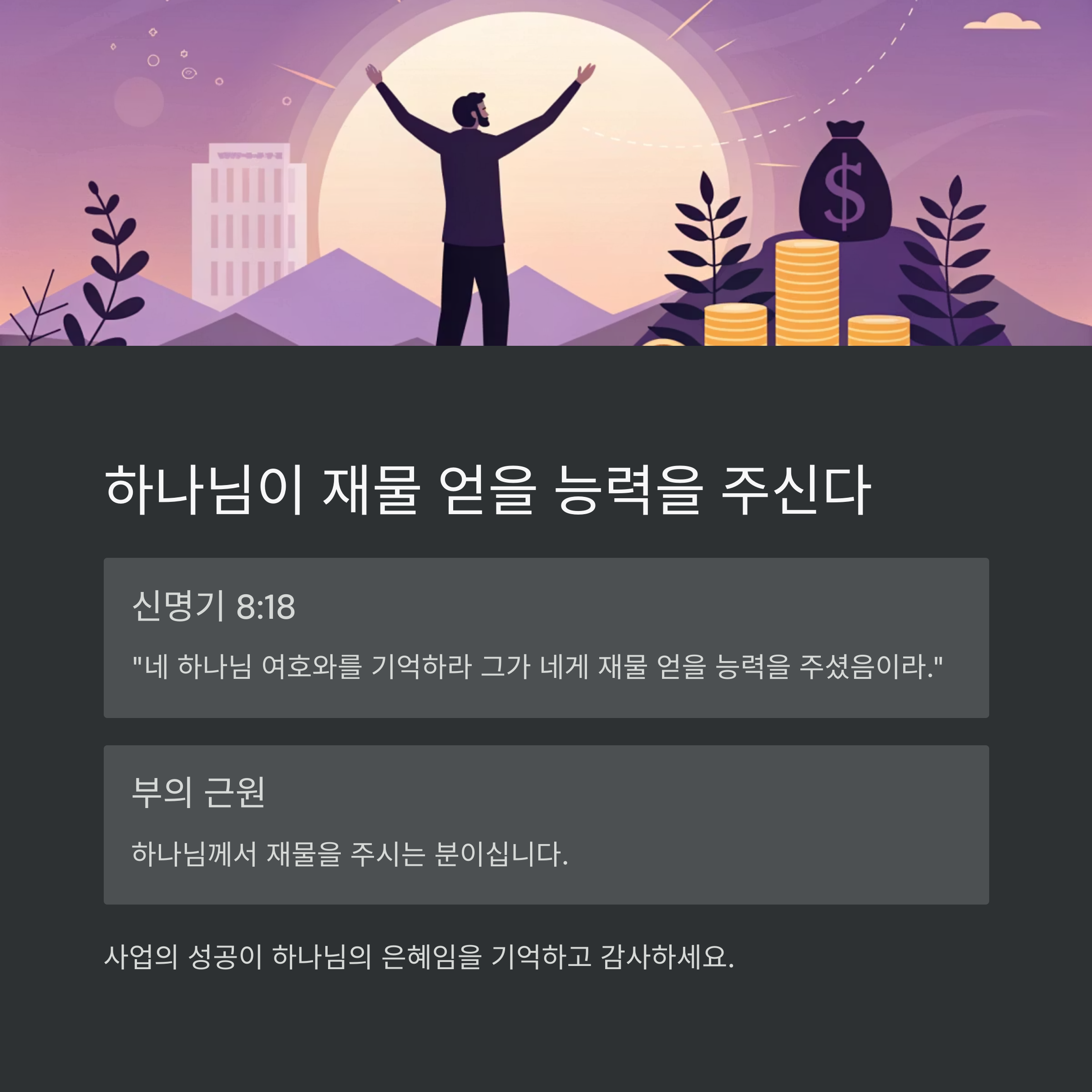 👉 사업의 성공이 하나님의 은혜임을 기억하고, 감사하세요.