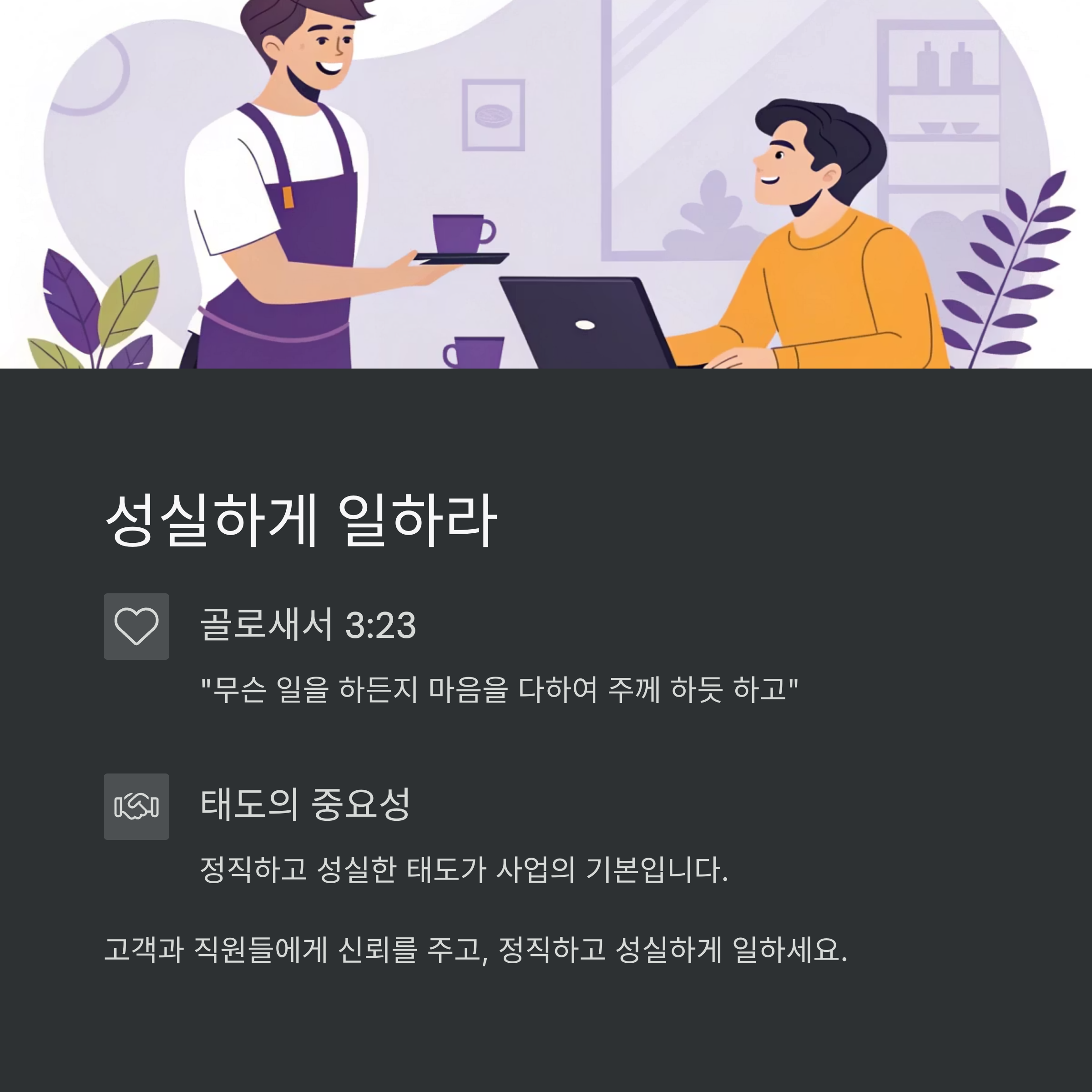 5️⃣ 골로새서 3장 23절 – 성실하게 일하라