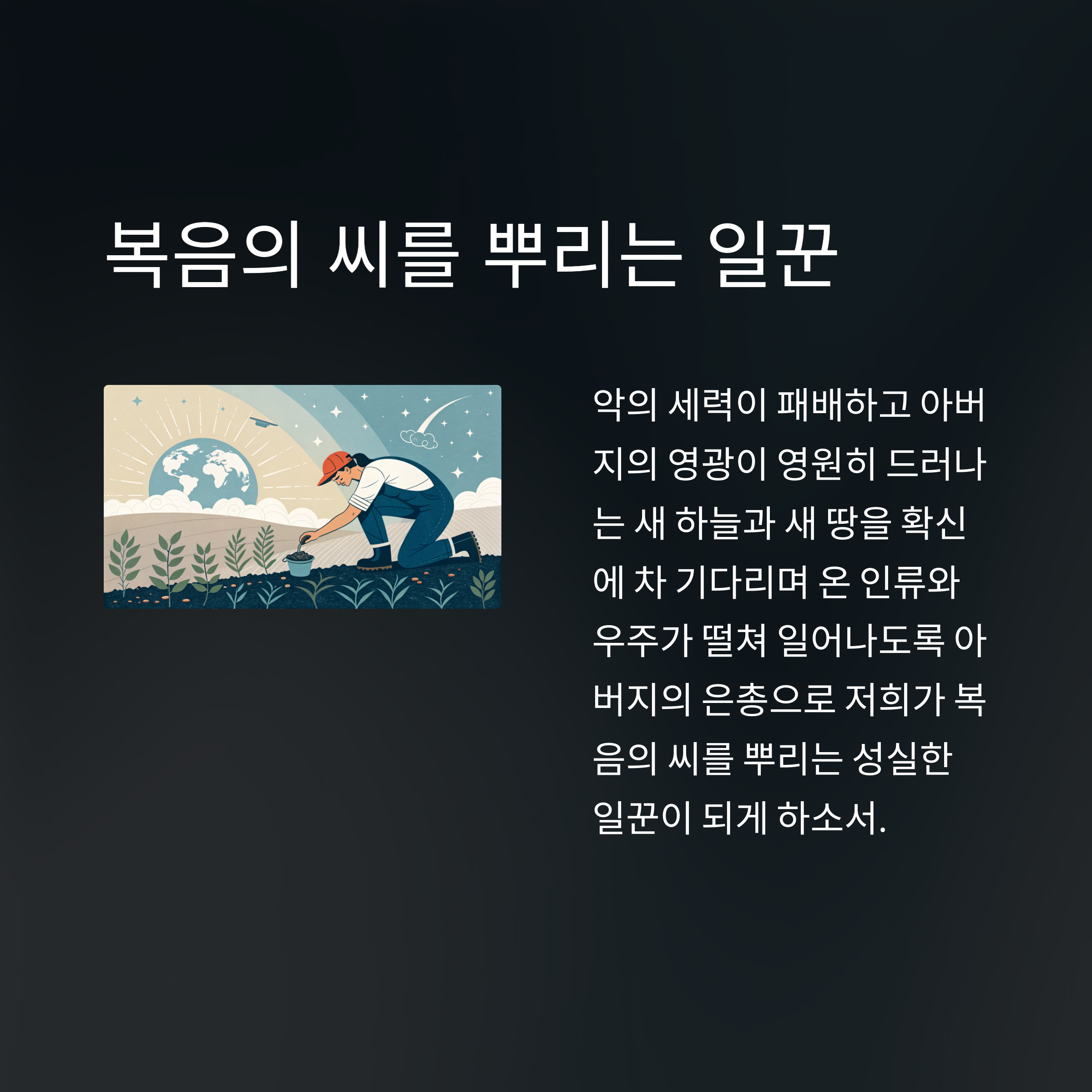 저희가 복음의 씨를 뿌리는 성실한 일꾼이 되게 하소서.