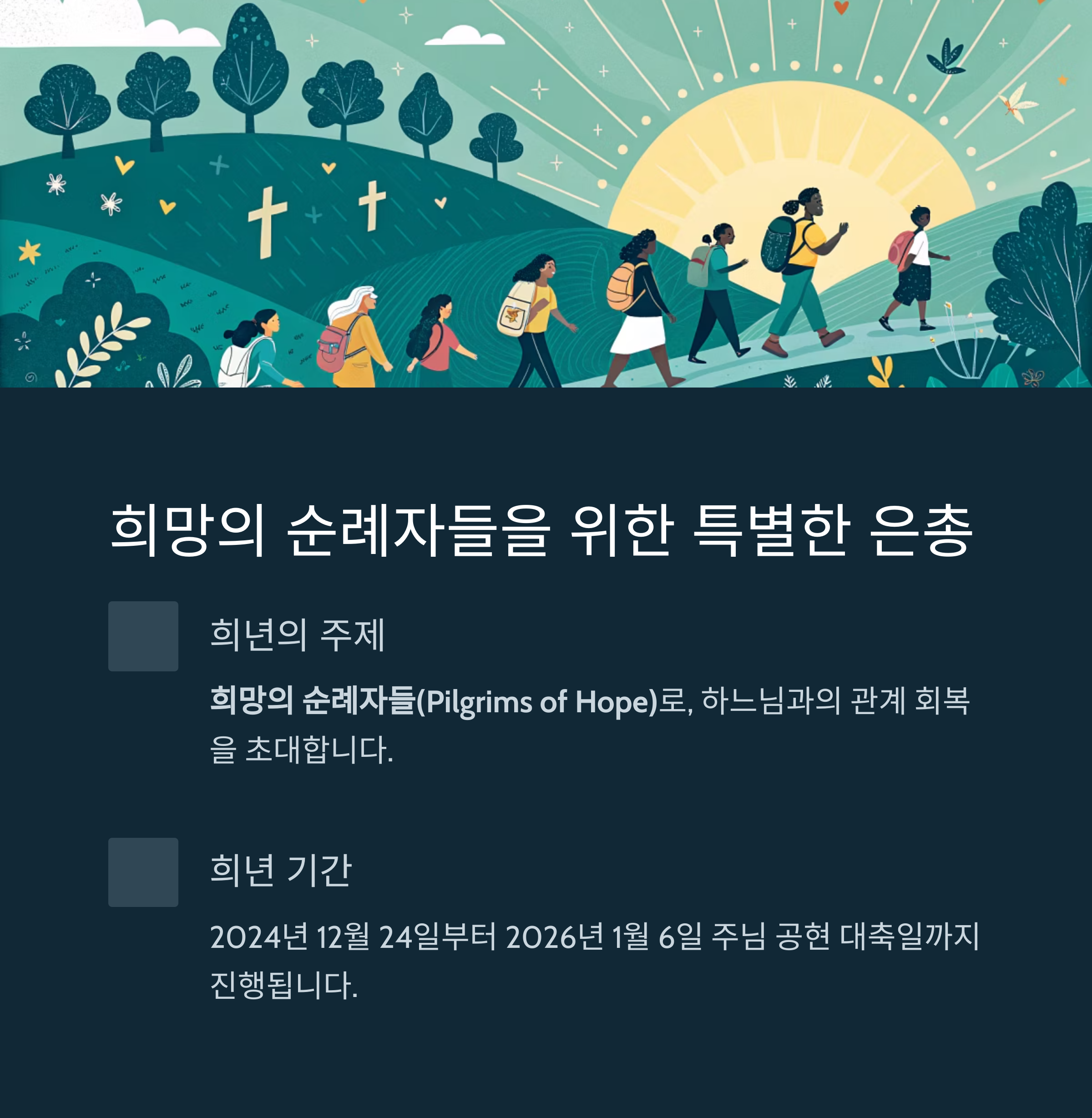 2025년은 가톨릭교회가 ‘희망의 순례자들’이라는 주제로 선포한 특별한 희년입니다.