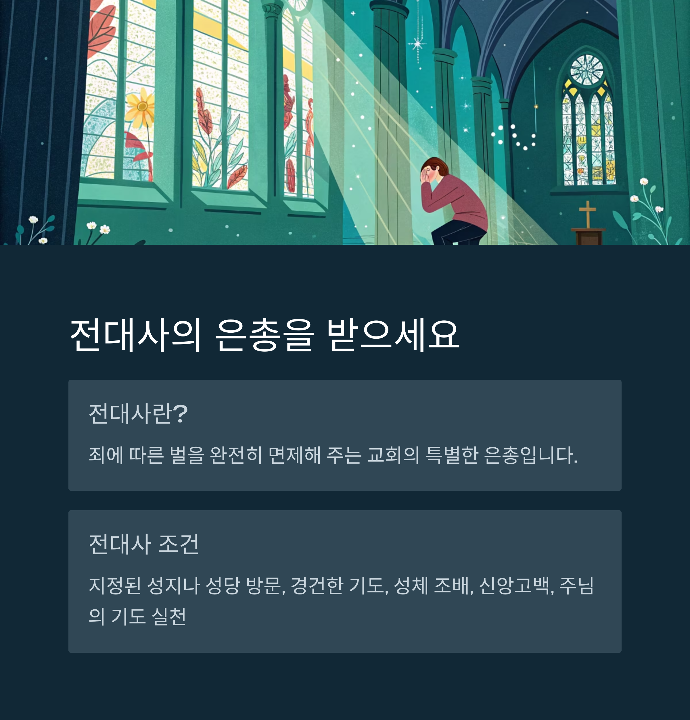 기도문과 전대사, 교황의 메시지를 통해 신앙의 여정을 새롭게 시작해 보시기 바랍니다.