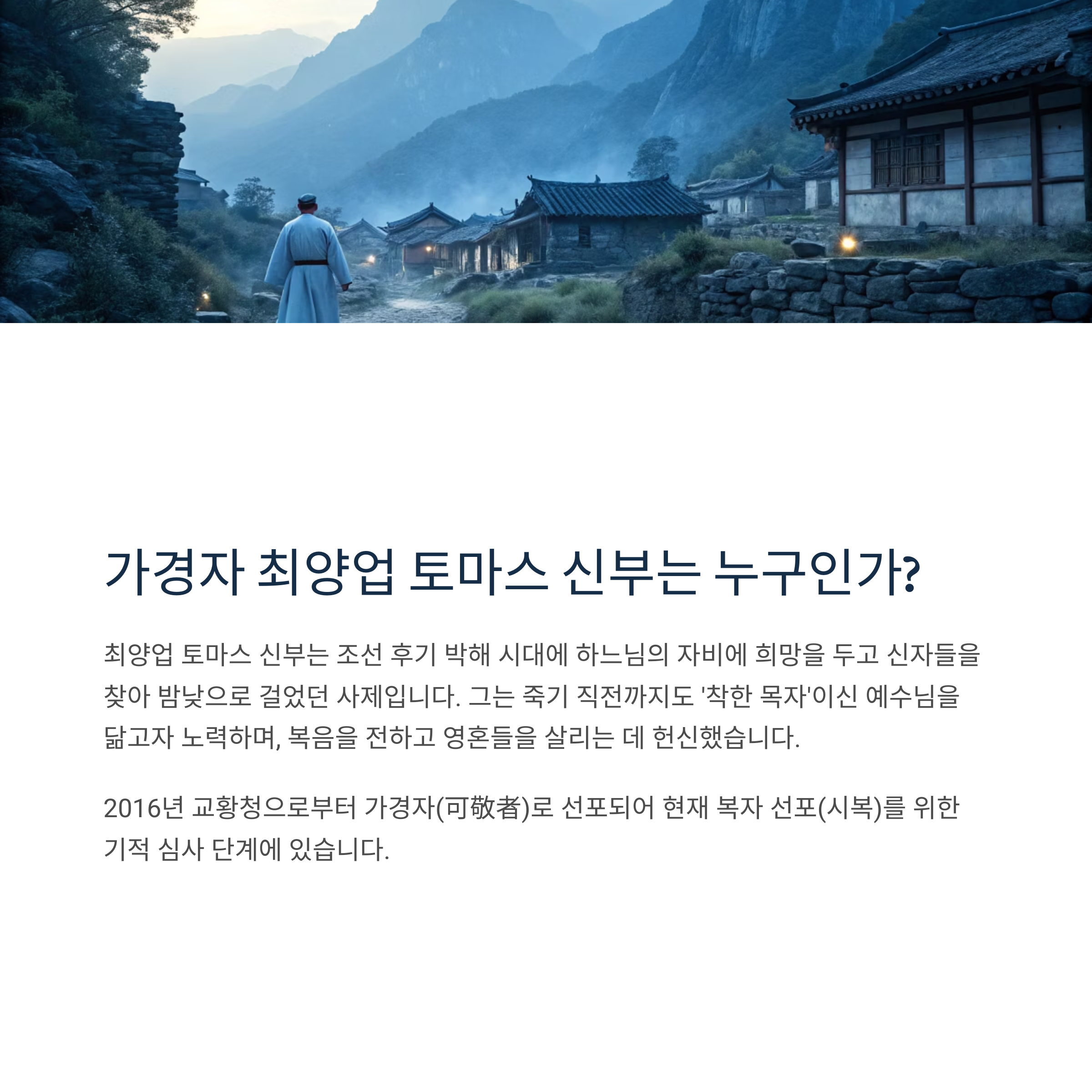 이 글에서는 최양업 신부의 시복 시성과 공식 기도문, 그리고 그 의미를 깊이 살펴보며,